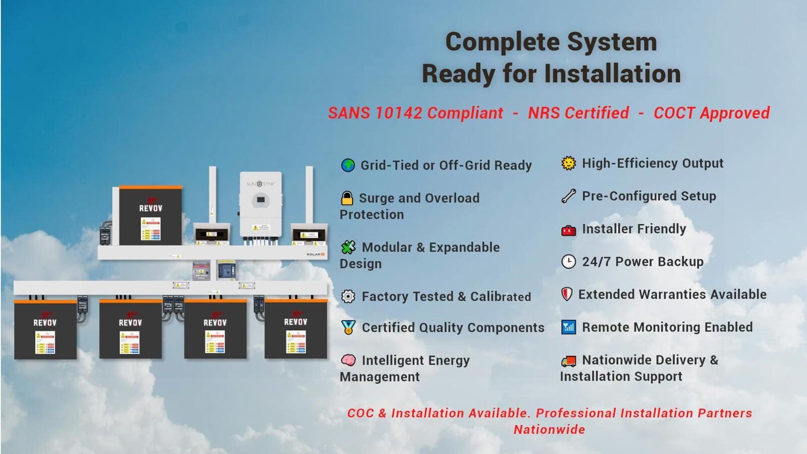 Combos available with various solar panel array sizes, or without panels for reliable load-shedding backup.