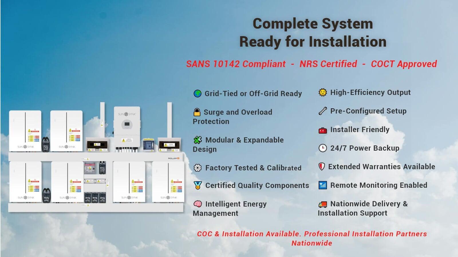 Combos available with various solar panel array sizes, or without panels for reliable load-shedding backup.