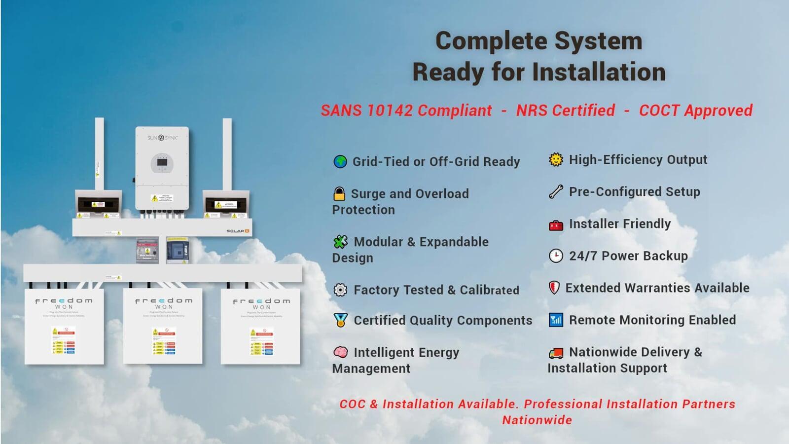 12.0 kW SUNSYNK Hybrid - FREEDOM WON Combo, c/w 3x 5.0 kWh Lithium Batteries
