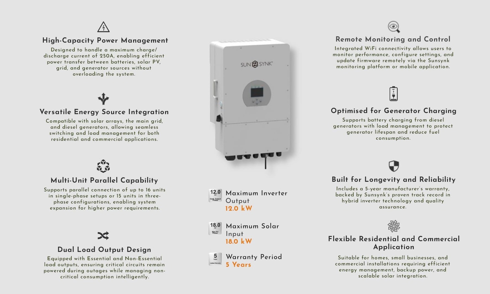 12.0 kW SUNSYNK Inverter Features & Benefits