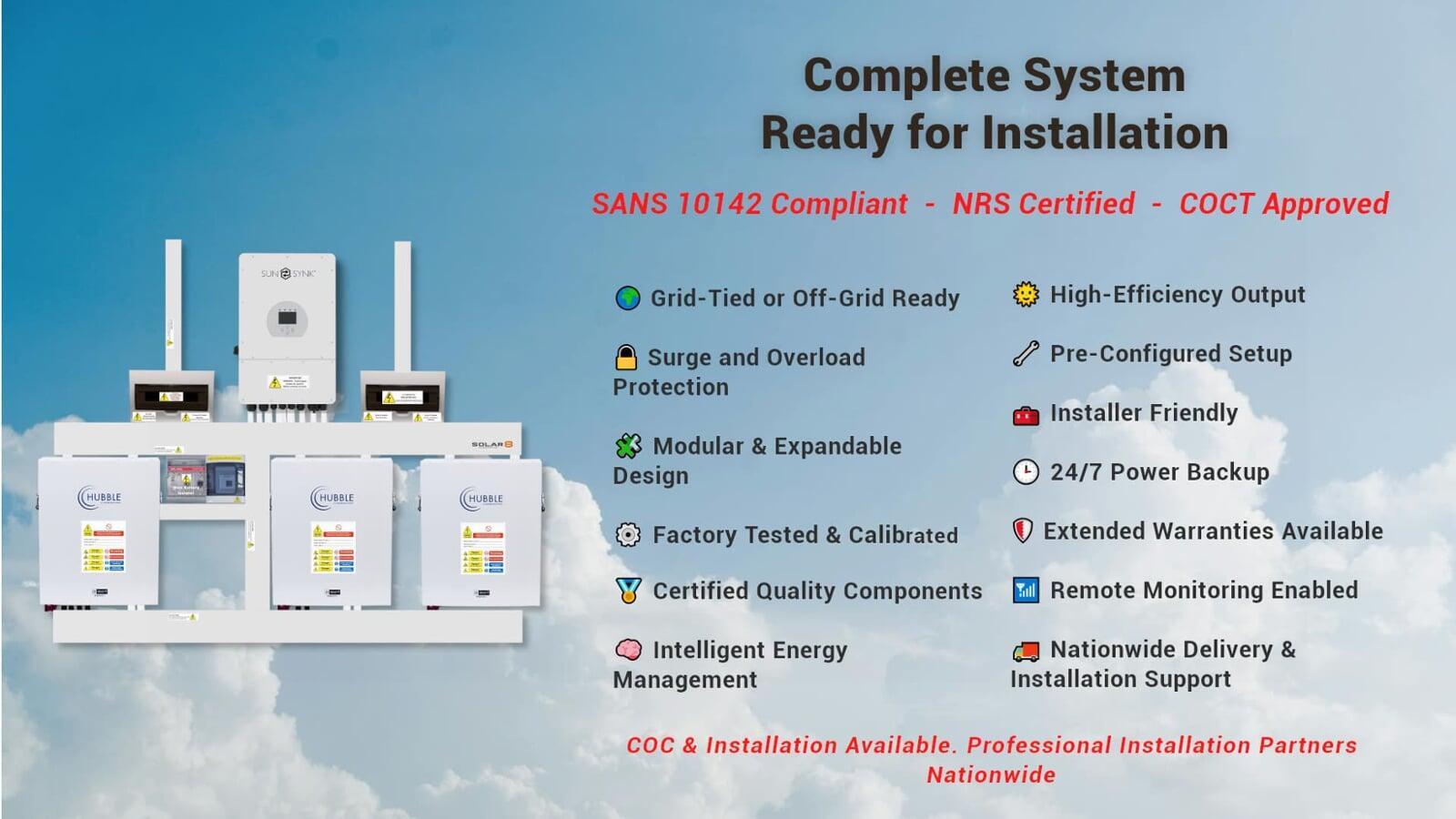 With over 20 years of industry leadership, Sunsynk has earned global acclaim for its innovative solar storage solutions and is trademark protected in over 40 countries. Renowned for setting benchmarks in power storage and management, Sunsynk’s expertise is evident in their diverse range of products. The 12.0 kW Sunsynk Hybrid Combo, paired with the 3 x 5.5 kWh HUBBLE Lithium Batteries, exemplifies this excellence, offering unparalleled reliability and efficiency for both residential and commercial applications.