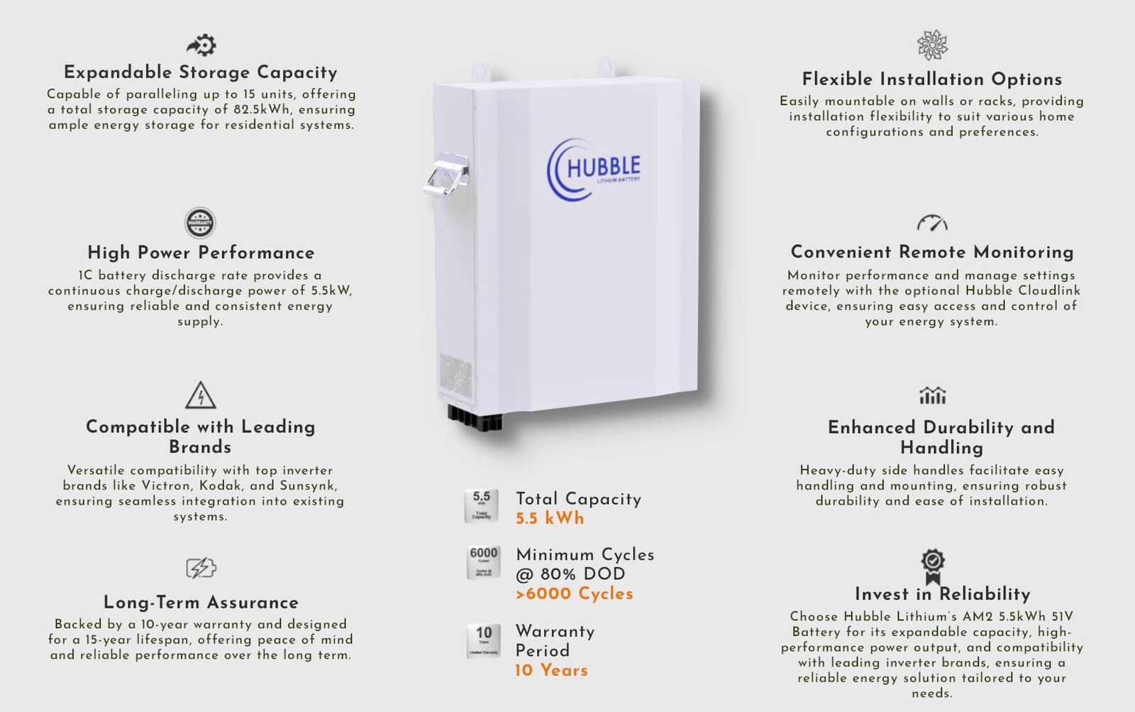 HUBBLE Lithium 5.5 kWh Battery Features & Benefits