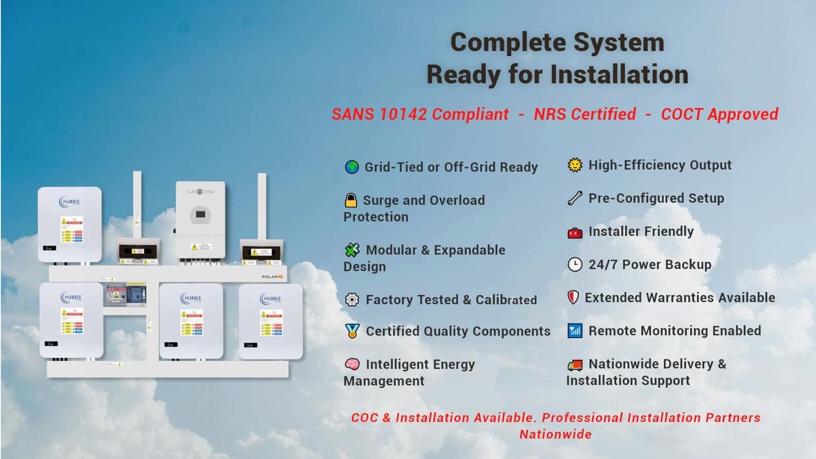 With over 20 years of industry leadership, Sunsynk has earned global acclaim for its innovative solar storage solutions and is trademark protected in over 40 countries. Renowned for setting benchmarks in power storage and management, Sunsynk’s expertise is evident in their diverse range of products. The 12.0 kW Sunsynk Hybrid Combo, paired with the 4 x 5.12 kWh HUBBLE Lithium Batteries, exemplifies this excellence, offering unparalleled reliability and efficiency for both residential and commercial applications.