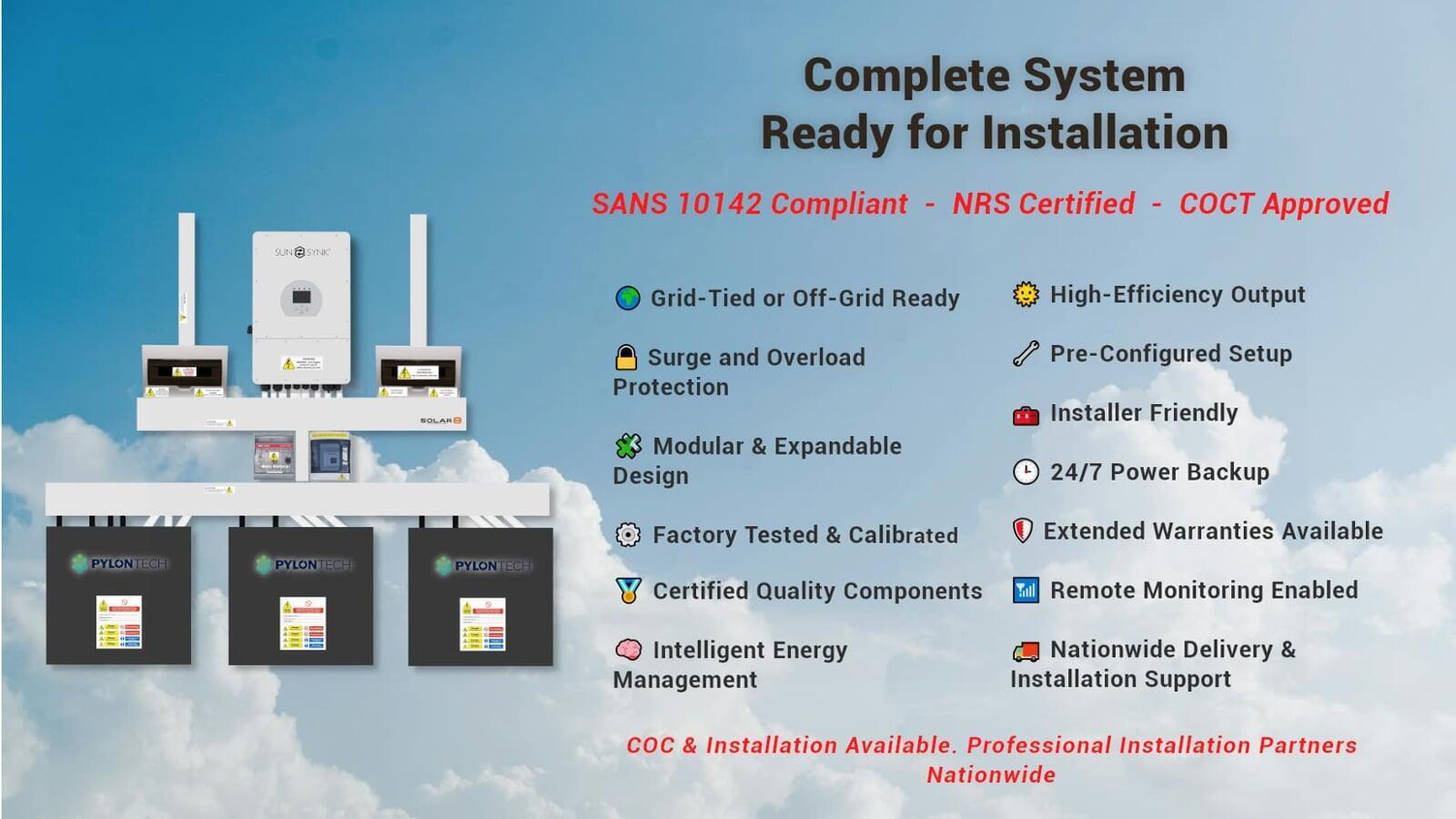 Combos available with various solar panel array sizes, or without panels for reliable load-shedding backup.