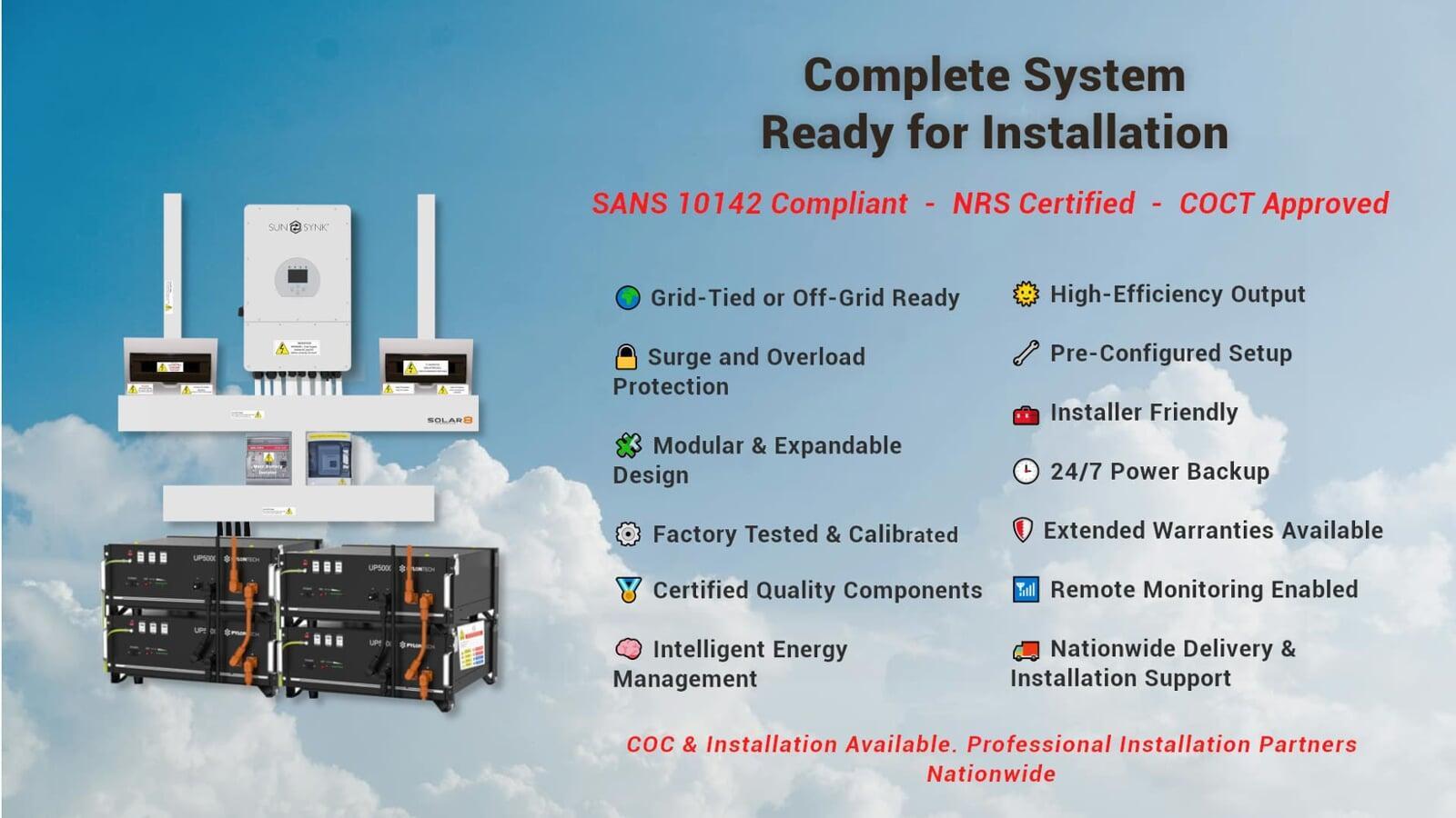 Combos available with various solar panel array sizes, or without panels for reliable load-shedding backup.