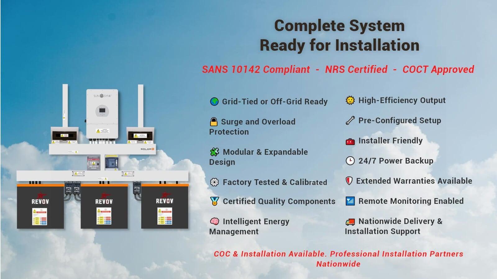 With over 20 years of industry leadership, Sunsynk has earned global acclaim for its innovative solar storage solutions and is trademark protected in over 40 countries. Renowned for setting benchmarks in power storage and management, Sunsynk’s expertise is evident in their diverse range of products. The 12.0 kW Sunsynk Hybrid Combo, paired with the 3 x 5.12 kWh REVOV Lithium Batteries, exemplifies this excellence, offering unparalleled reliability and efficiency for both residential and commercial applications.