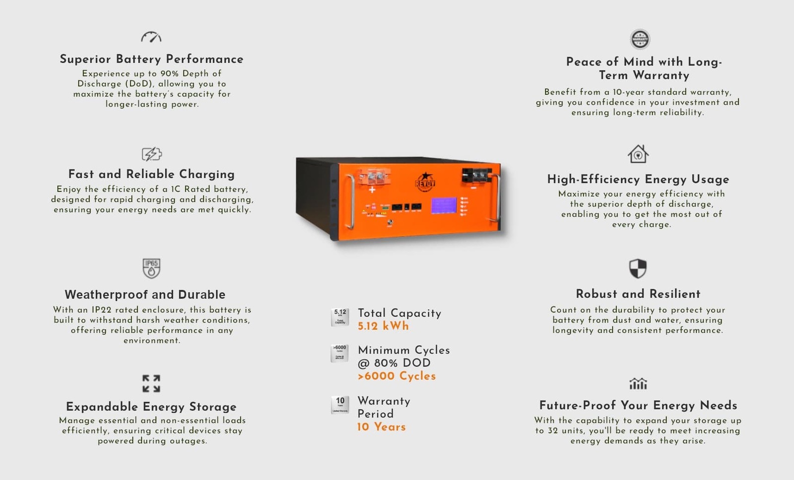 REVOVLithium 5.12 kWh Battery Features & Benefits