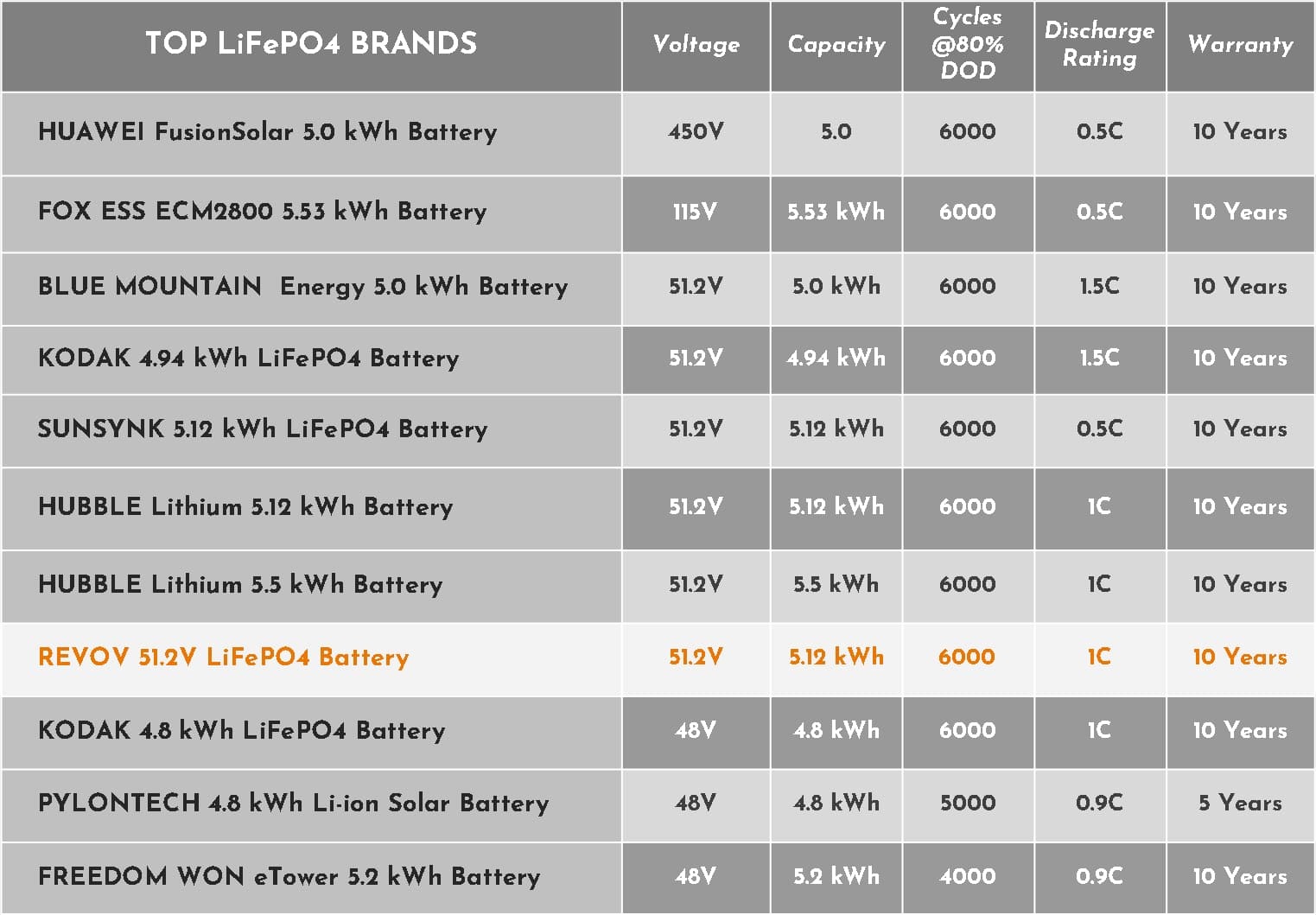 How does the REVOV Lithium 5.12 kWh battery stack up against other industry-leading brands?