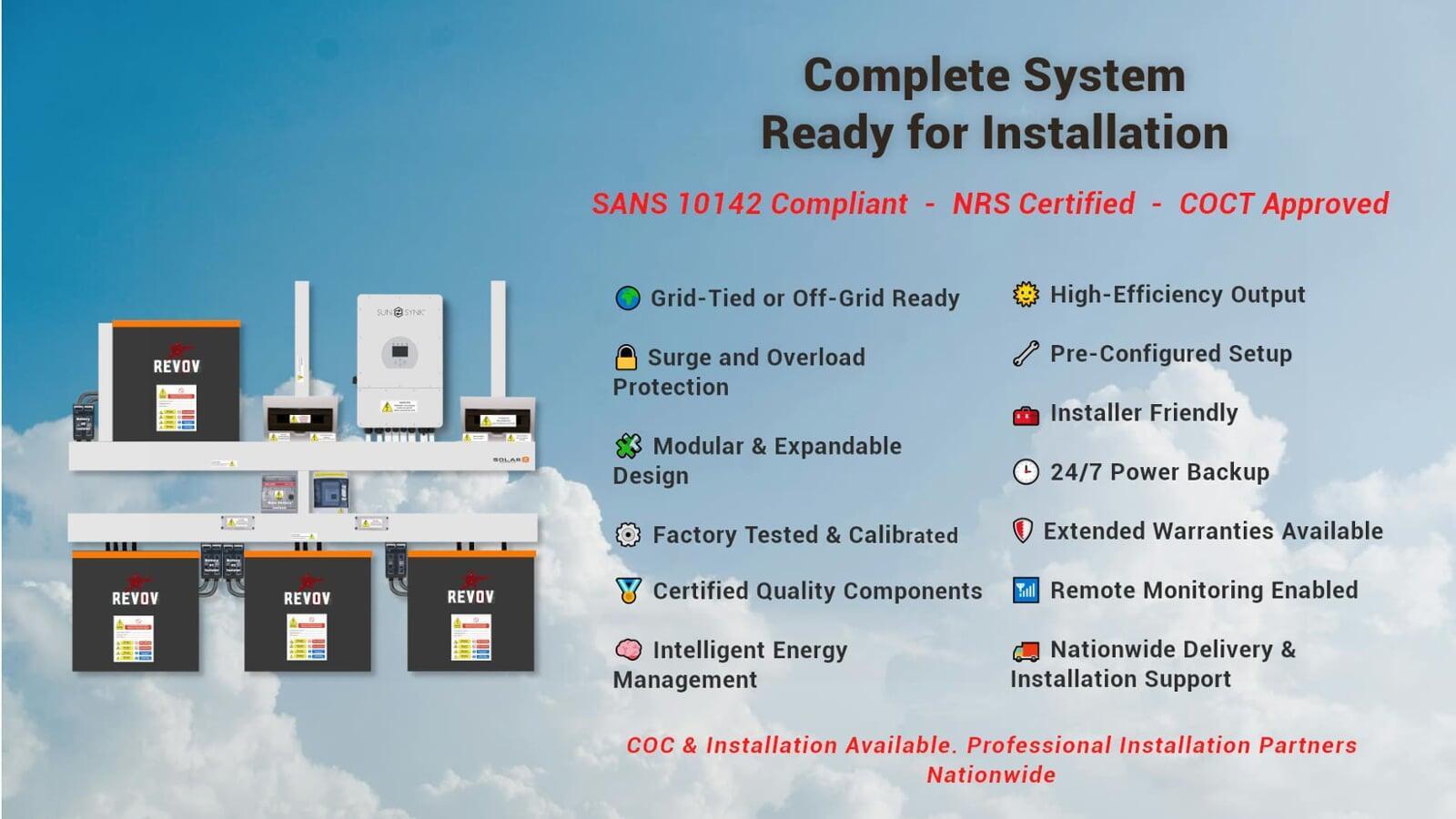 With over 20 years of industry leadership, Sunsynk has earned global acclaim for its innovative solar storage solutions and is trademark protected in over 40 countries. Renowned for setting benchmarks in power storage and management, Sunsynk’s expertise is evident in their diverse range of products. The 12.0 kW Sunsynk Hybrid Combo, paired with the 4 x 5.12 kWh REVOV Lithium Batteries, exemplifies this excellence, offering unparalleled reliability and efficiency for both residential and commercial applications.