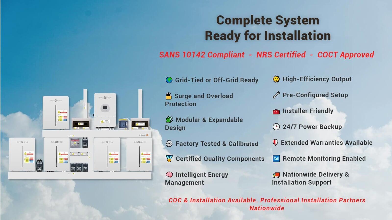 Combos available with various solar panel array sizes, or without panels for reliable load-shedding backup.