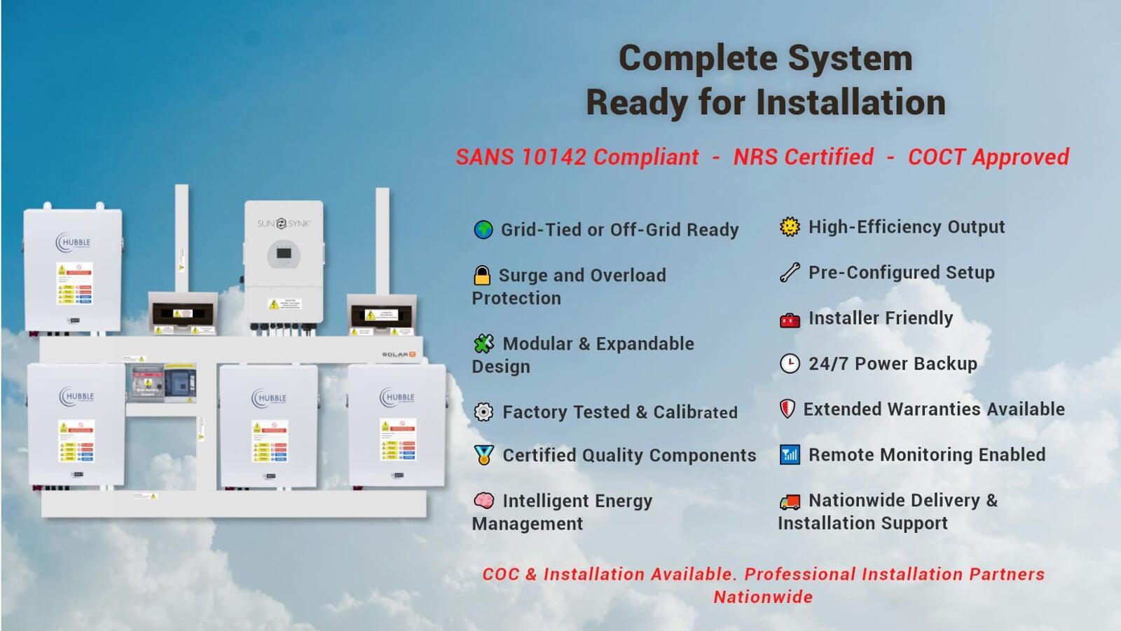 Combos available with various solar panel array sizes, or without panels for reliable load-shedding backup.