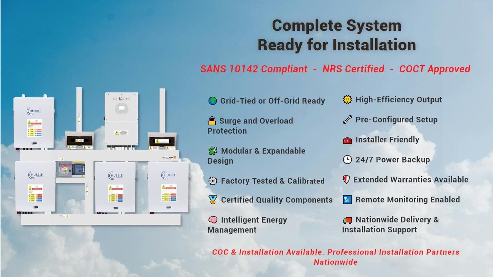 Combos available with various solar panel array sizes, or without panels for reliable load-shedding backup.