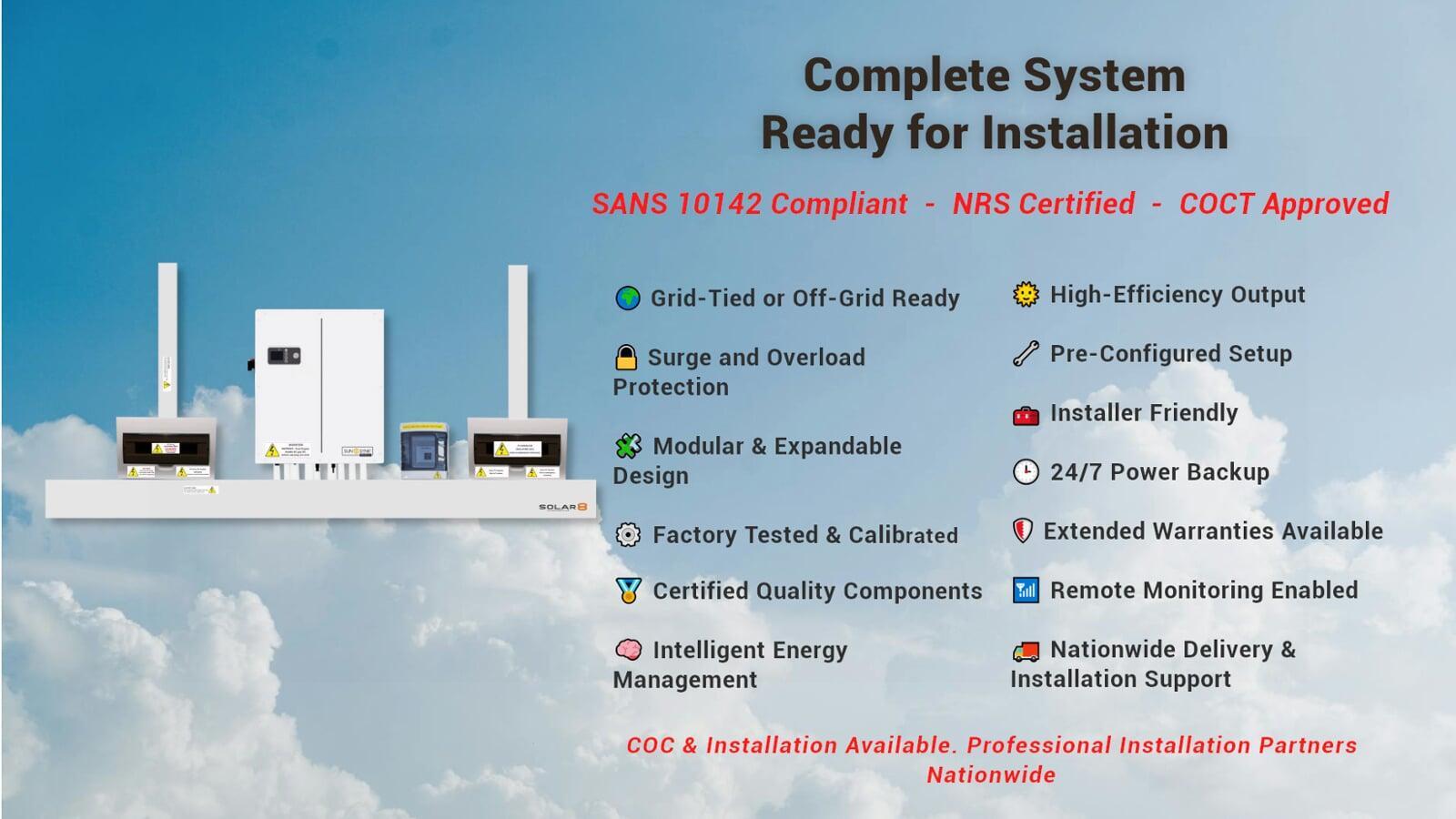 Combos available with various solar panel array sizes, or without panels for reliable load-shedding backup.