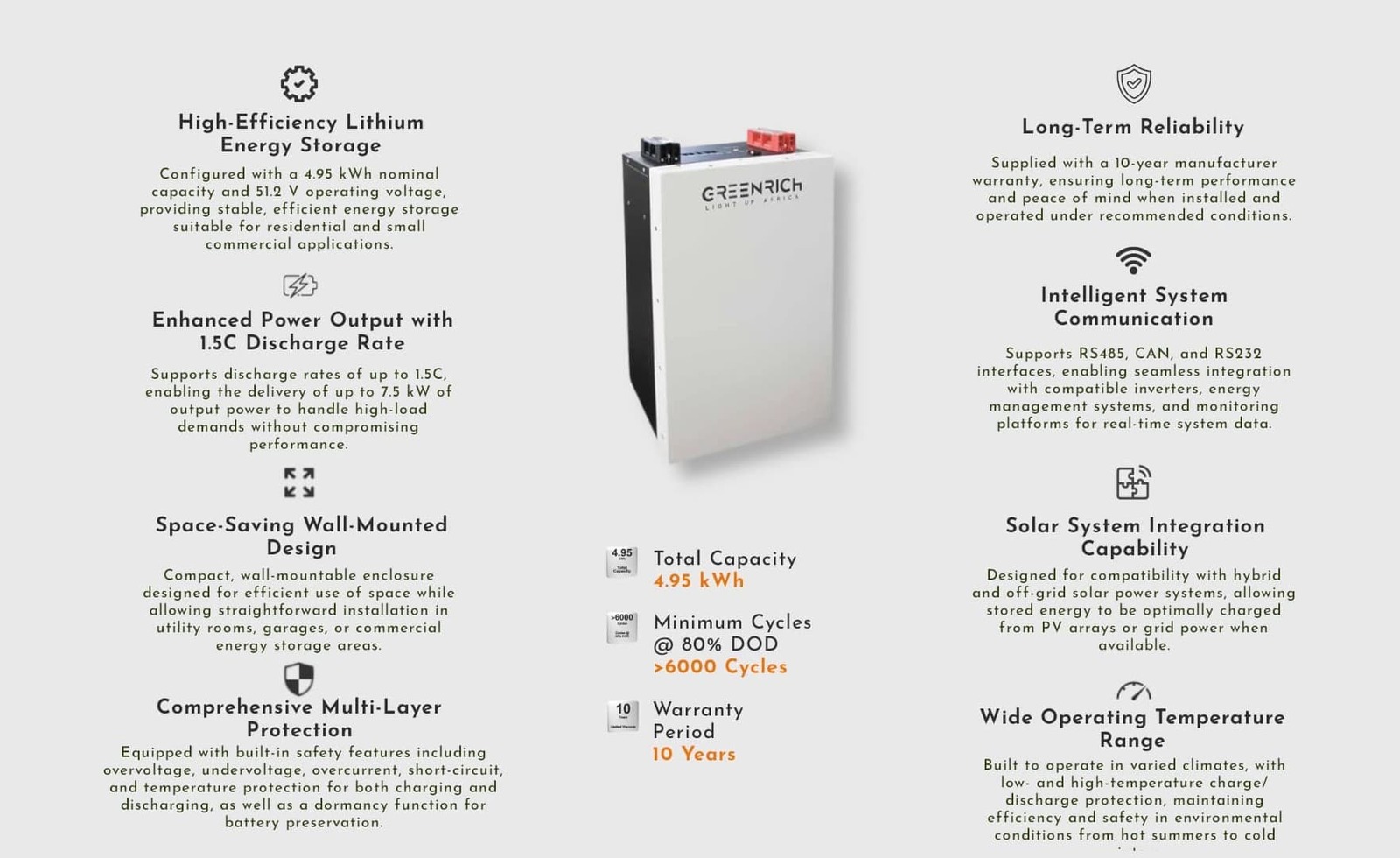 Greenrich Lithium 4.95kWh Battery Features & Benefits