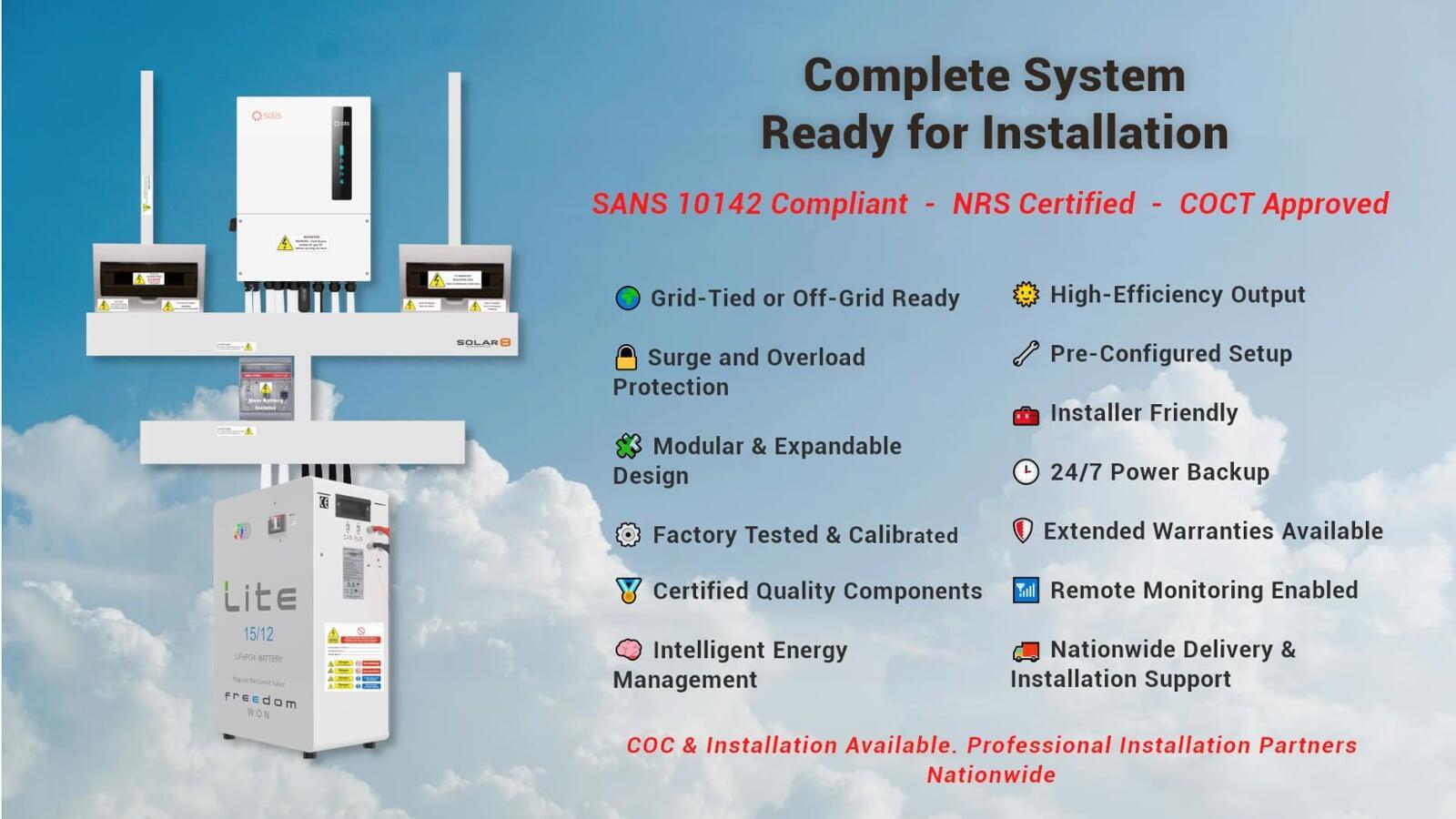 5.0 kW SOLIS S6 Hybrid - FREEDOM WON Combo, c/w 15.0 kWh Lithium Battery