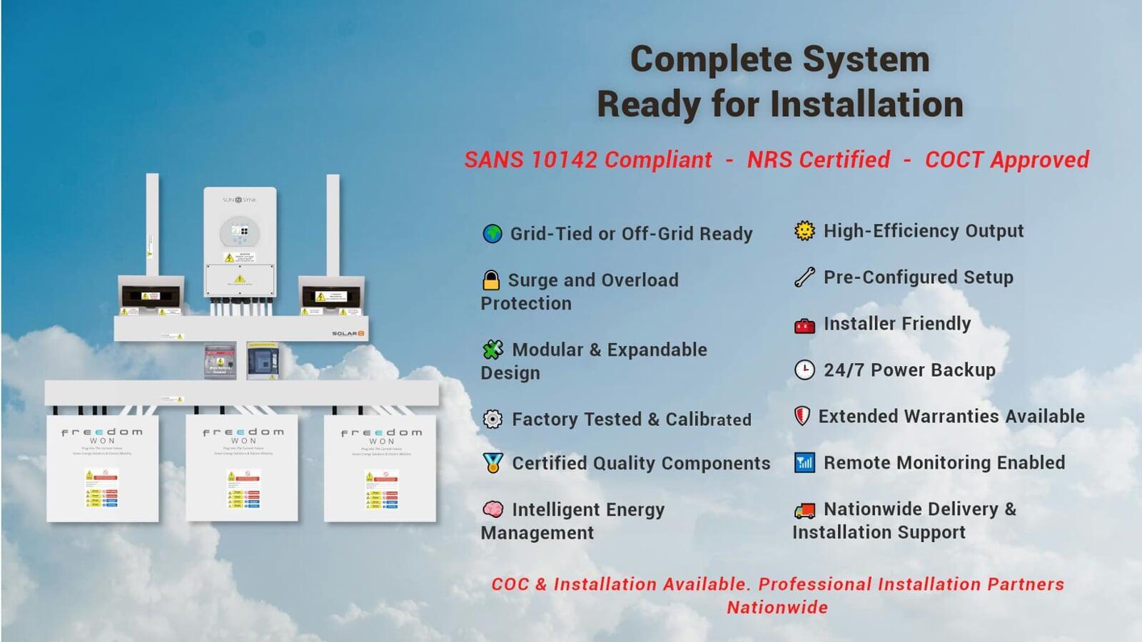 5.0 kW SUNSYNK Hybrid - FREEDOM WON Combo, c/w 3 x 5.0 kWh Lithium Batteries