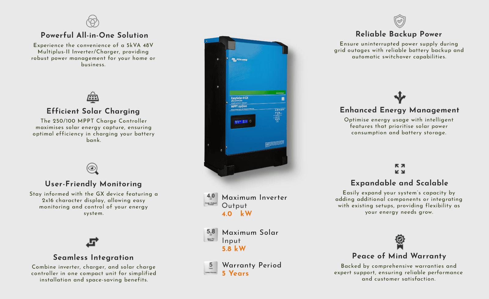 Victron 5.0 kW EasySolar-II Inverter Features & Benefits