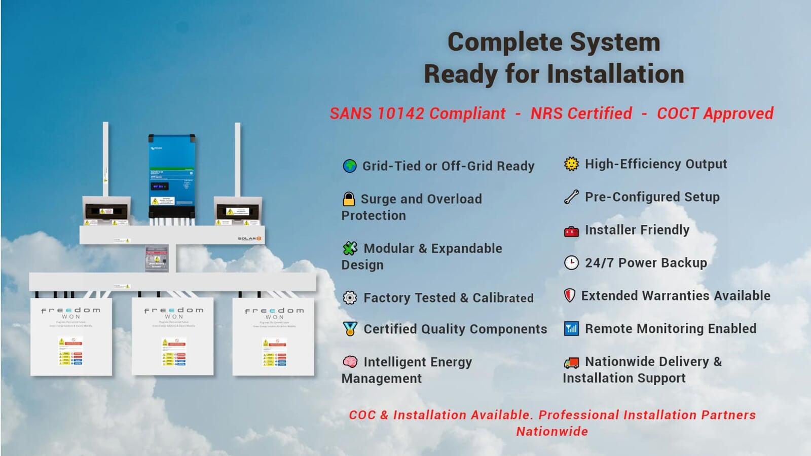 Combos available with various solar panel array sizes, or without panels for reliable load-shedding backup.