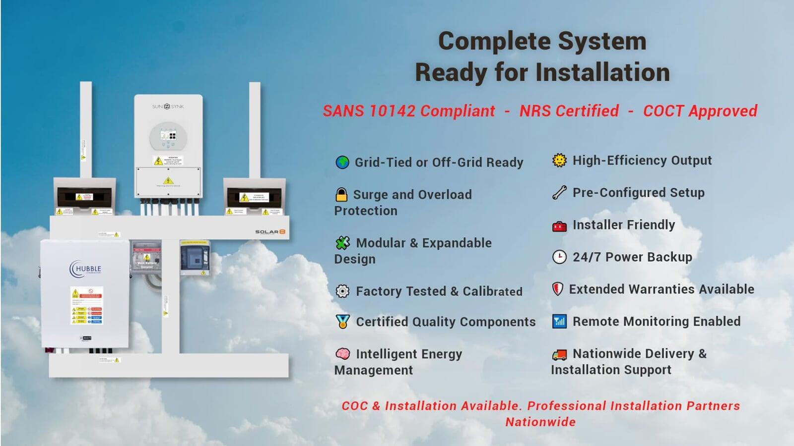 Combos available with various solar panel array sizes, or without panels for reliable load-shedding backup.