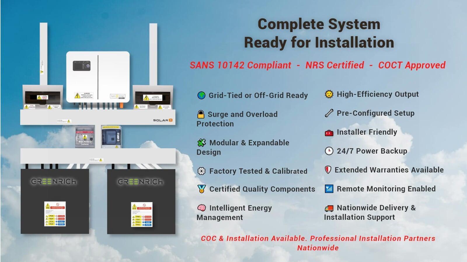 Combos available with various solar panel array sizes, or without panels for reliable load-shedding backup.