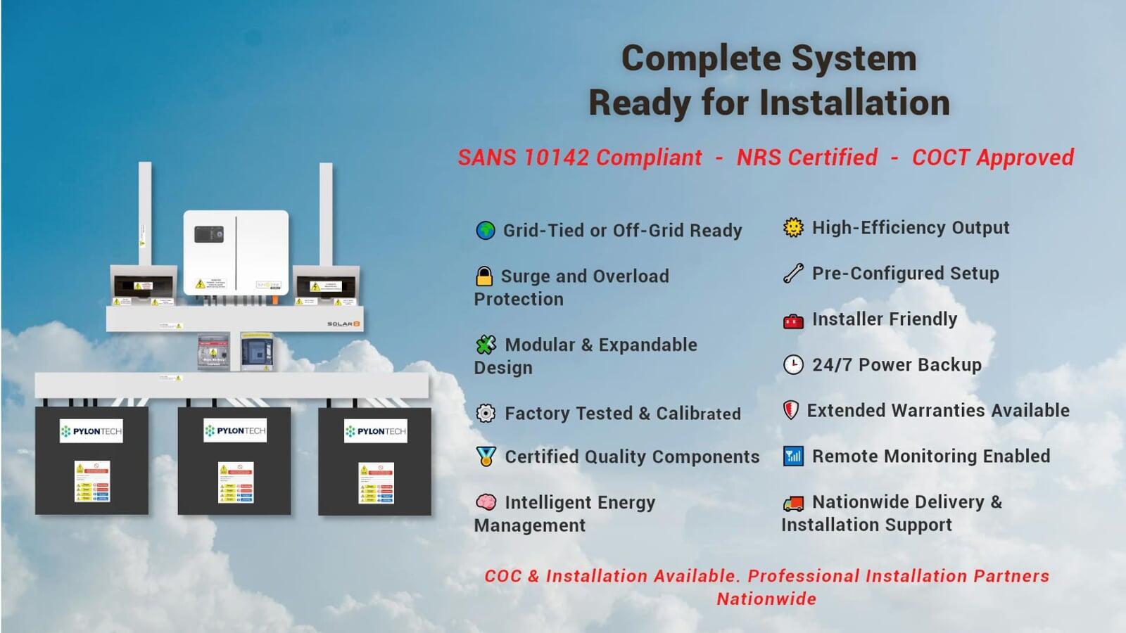 Combos available with various solar panel array sizes, or without panels for reliable load-shedding backup.