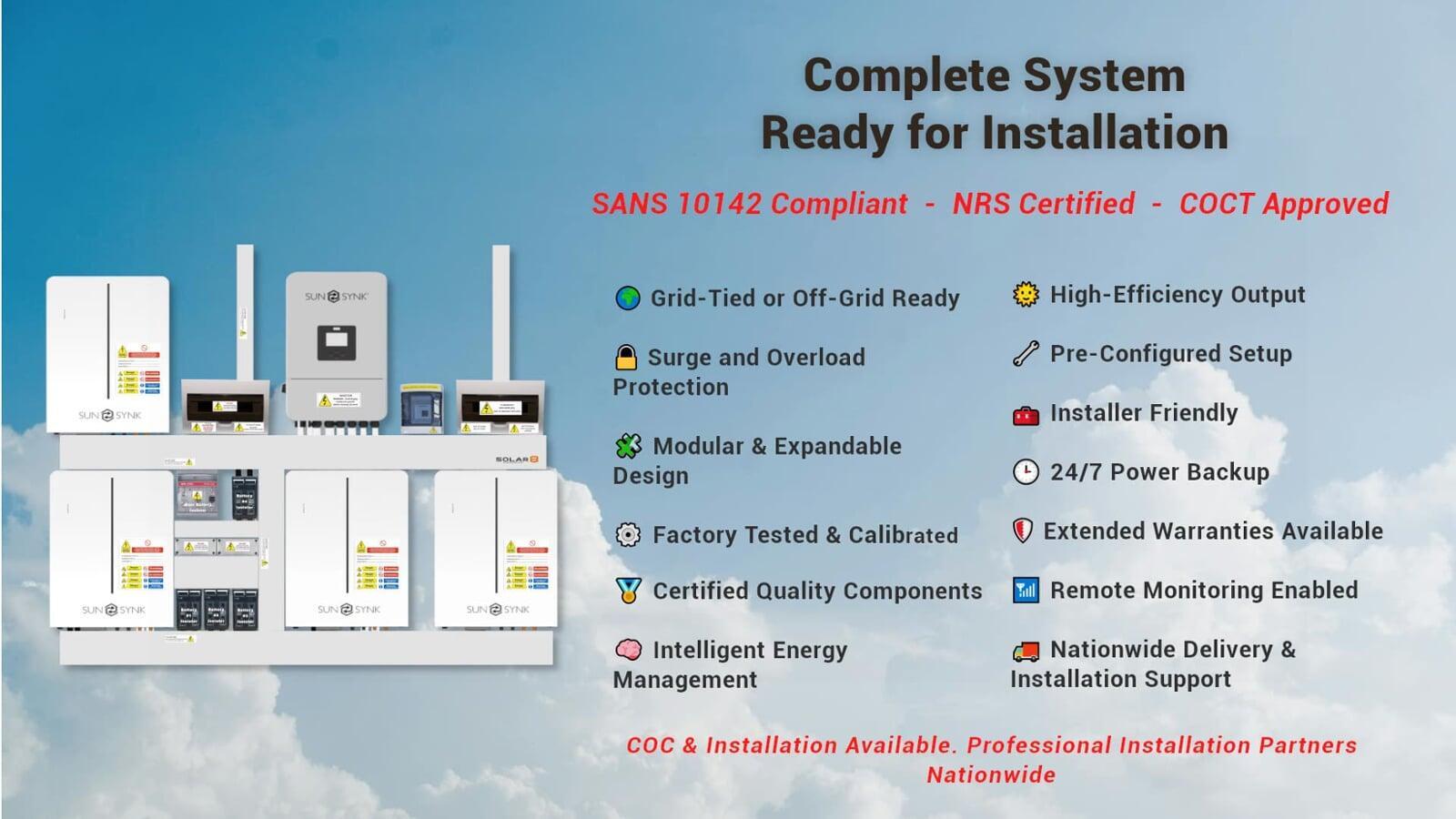 Combos available with various solar panel array sizes, or without panels for reliable load-shedding backup.