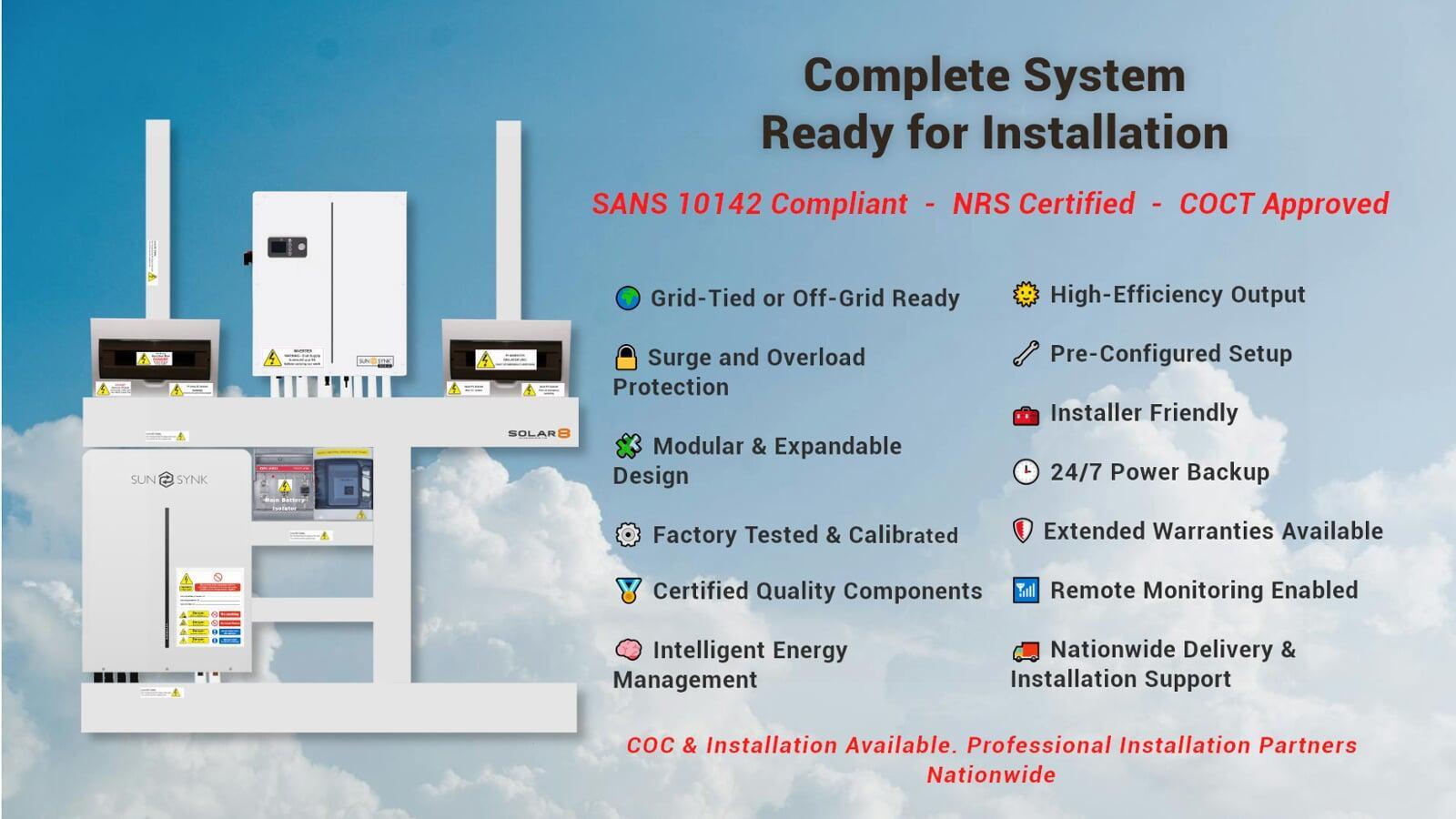 Combos available with various solar panel array sizes, or without panels for reliable load-shedding backup.